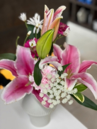 ピンクの百合の花言葉は「上品」「優雅」「富と繁栄」「愛と幸福」といった華やかなものだそうです♡