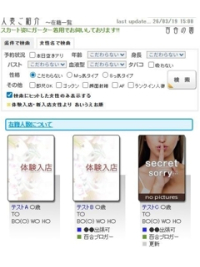「出張」が可能な女性は「●●出張可」と表示されるようにし、出張対応の可否が分かるようにしました。